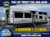 Sleeps 11 Slides 3 Length 44 ft 10 in Ext Width 8 ft Ext Height 13 ft 5 in Int Height 7 ft Hitch Weight 1824 lbs GVWR 14219 lbs Dry Weight 13219 lbs Cargo Capacity 1000 lbs Fresh Water Capacity 55 gals Grey Water Capacity 132 gals Black Water Capacity 88 gals Furnace BTU 35000 btu Available Beds King, Two Queen Refrigerator Type French Door Cooktop Burners 4 Shower Size 36" x 30" Number of Awnings 1 LP Tank Capacity 30 lbs Water Heater Type On Demand AC BTU 15000 btu TV Info LR 55" TV Awning Info 21' Axle Count 2 Washer/Dryer Available Yes Number of LP Tanks 2 Shower Type Standard Electrical Service 50 amp Similar Floorplans