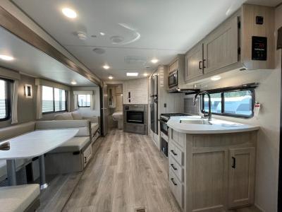 Sleeps 10 Slides 1 Length 32 ft 2 in Ext Width 8 ft Ext Height 11 ft 1 in Int Height 6 ft 9 in Hitch Weight 886 lbs GVWR 9120 lbs Dry Weight 7120 lbs Cargo Capacity 2000 lbs Fresh Water Capacity 38 gals Grey Water Capacity 74 gals Black Water Capacity 29 gals Furnace BTU 35000 btu Number Of Bunks 2 Available Beds RV Queen Refrigerator Type GE Stainless 12V Refrigerator Size 10.7 cu ft Cooktop Burners 3 Number of Awnings 1 LP Tank Capacity 20 lbs Water Heater Type Tankless On Demand AC BTU 13500 btu Awning Info 18' Electric w/Multicolor LED Strip & Remote Axle Count 2 Number of LP Tanks 2 Shower Type Tub/Shower Combo Electrical Service 30 amp Similar Travel Trailer Floorplans