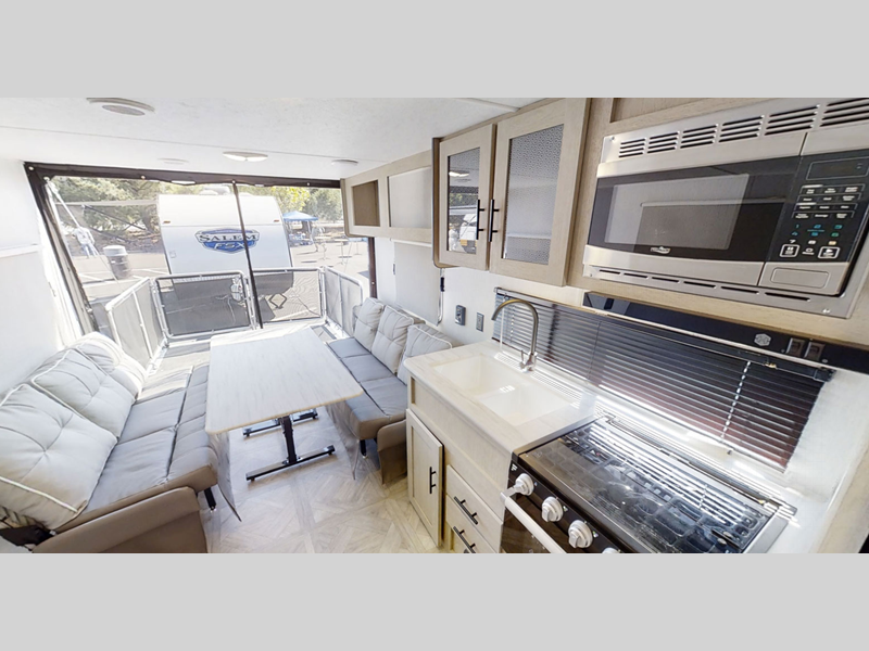 Each region comes with their own set of features, but each model will provide you with the comforts of home while at your favorite campsite. Whatever model you choose, you will be able to store all of your camping gear with the exterior storage areas and create your best home cooked meals with the fully equipped kitchens.