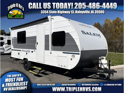 The Forest River Salem FSX travel trailers and toy hauler travel trailers are ultra comfortable and lightweight, perfect for first time or seasoned campers alike! You will love how easy it will be to relax with residential features that will make your space feel just like home, and the durable construction means you can enjoy your RV for years to come. There are a wide variety of floorplans to choose from, including couple's trailers, bunk models, and toy haulers, all with full bath and kitchen amenities and plenty of storage for all your gear!