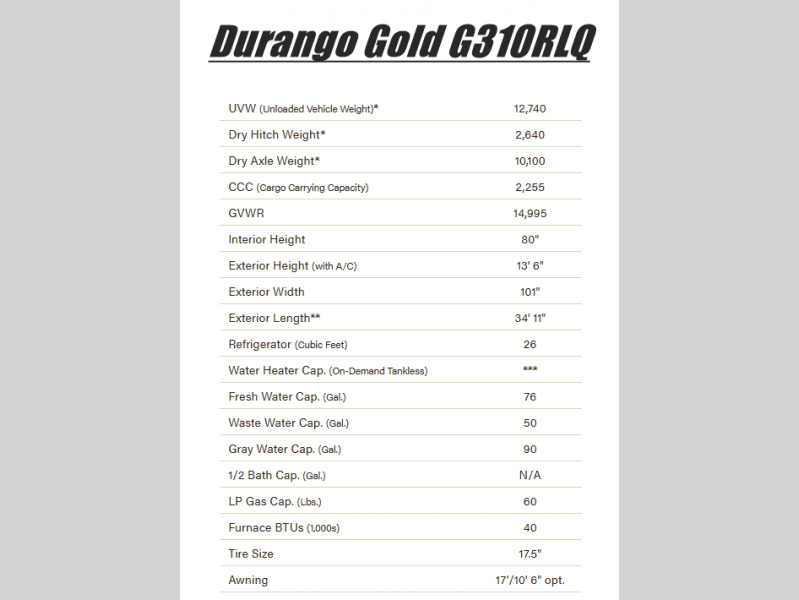KZ Durango Gold fifth wheel G310RLQ highlights: